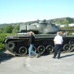 Turen gikk så gjennom Rennfast til Mortavika hvor vi tok fergen til Arsvågen på Bokn. Deretter buss til Krigsmuseet. Her ble vi mottatt av en eksellent guide. Det var oppbygget en gate fra Haugesund med fasader av bygningene slik det var i 1942. I butikkene var det utstilt varer som ble solgt da. I gatebildet var det figurer av folk kledd slik de var den gang, det var også figurer av tyske soldater, blant annet en til hest. Vi ble tatt rundt til forskjellige senarioer hvor alle våpengrenene var representert. Det var utstilt omtrent alle de våpen som ble benyttet under krigen, både de tyske og de alliertes. Det var blant annet i realistiske omgivelser en russisk tanks.