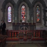 Deretter gikk turen til Olavskirken på Avaldsnes. Her ble vi mottatt av nok en dyktig guide. Det ble noe stopp i omvisningen da det var et bryllup i kirken. Men plutselig var det over og vi kunne gå inn i kirken.