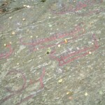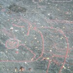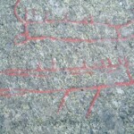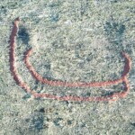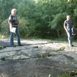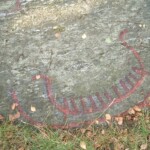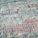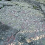 Ved Austre Åmøy kapell ble vi møtt av Helge Rossnes og leder av Rennesøy og Åmøy Historielag Lillian Vareberg Holgersen. Disse orienterte i fellesskap om vandringen til helleristningsfeltene som er noen av de største i landet, og er fra bronsealderen. På det første feltet vi beskuet var det over 400 forskjellige figurer, hovedsakelig skip, men også fotavtrykk, sol, verktøy (symbolske økser) og en diger kveite., (Kveite har alltid blitt betraktet i den norrøne mytologi, som en hellig fisk)