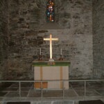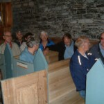 Deretter gikk turen til Sørbø kirke på Rennesøy. Her ble vi mottatt av Peder Raugstad som tok oss med inn i kirken. Han opplyste at kirken antagelig var bygget i ca. 1130, av kleberstein, tatt ut av et klebersteinbrudd ikke langt fra kirken.
