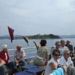 Ved Lindøy har vi en times stopp. Vi får servert lapskaus om bord. Det er anledning til å strekke bena og ta en tur over øya. Her er vakkert kulturlandskap og velstelte bygninger. Lindøy er godt kjent for oss alle, en oppdragelsesanstalt fra 1888, stiftet av Lars Oftedal. Det er fortsatt noen få elever ved skolen i dag. Etter å ha strukket på beina og nydt en kopp kaffe i solskinnet, går turen forbi Hellesøy og Kalvøy. Alle beundret den godt bevarte presteboligen på Hellesøy. Den ble i sin tid flyttet fra Hjelmeland.