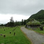 Kl. 12.30 var vi framme i Fortidslandsbyen Landa. Husfrua på Landa tok vel imot oss i kjole og smykker (etterlikning) fra bronsealderen.