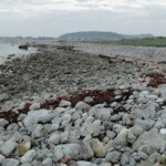 Tidevannet rant inn og ut slik at det var mye liv der og at det var fin plass og ta med barn. Her var det en japansk taretype som hadde kommet til den engelske kanal med ballastvann, og drevet over Nordsjøen til Bø. Bonden viste oss plassen der sildesalteriet fra 1800 tallet hadde ligget.